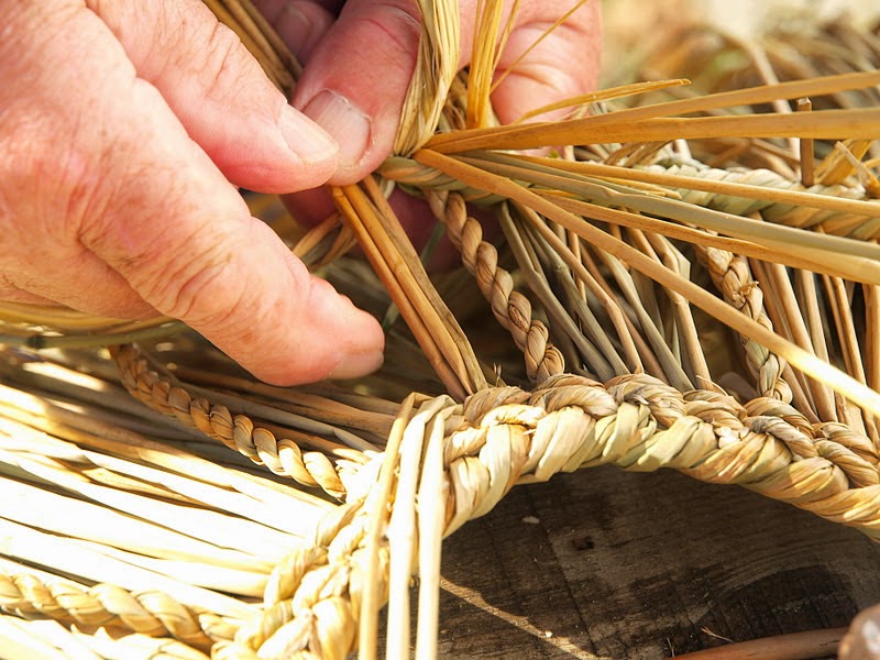 carreira). Começa por se separar, num ponto, a trança dos juncos que ficarão